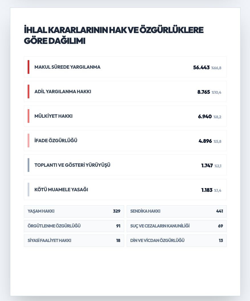 Görselimizden bir bölüm: İhlal kararlarının hak ve özgürlüklere göre dağılımı