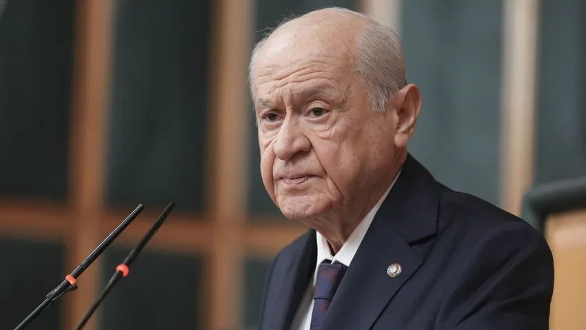 MHP Genel Başkanı Devlet Bahçeli, partisinin grup toplantısında sürecin gerektirdiği yasal adımlara ilişkin “Bu meselede hiçbir boşluk, hiçbir ihmal ve hiçbir zafiyetin kabulü mümkün değildir. Oyalanmaya ve oyalamaya gerek yoktur. Biz diyoruz ki: Barış; teslimiyet değildir. Barış; taviz değildir” dedi.