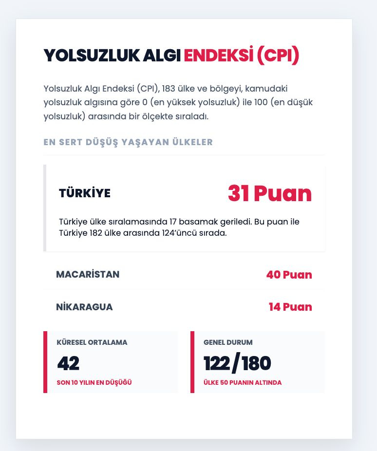 🔵Uluslararası Şeffaflık Derneği’nin hazırladığı 2025 yılı Yolsuzluk Algı Endeksi’ni infografikleştirdik! Küresel ölçekte ve Türkiye’de son durum ne?