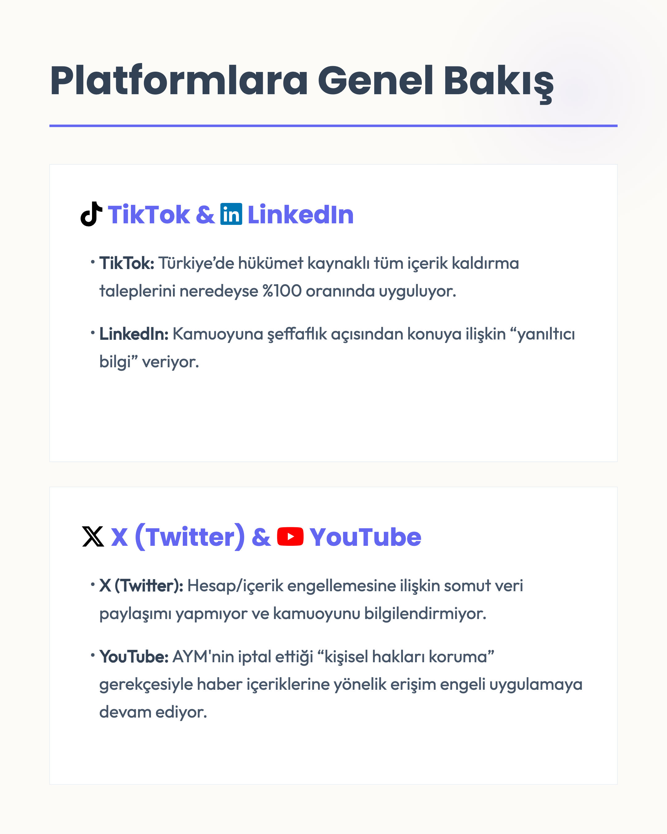 Sosyal medya platformları şeffaflık ilkesi gereğince kamuoyuna hangi içeriği, neden kaldırdığını yeterince açıklamıyor.