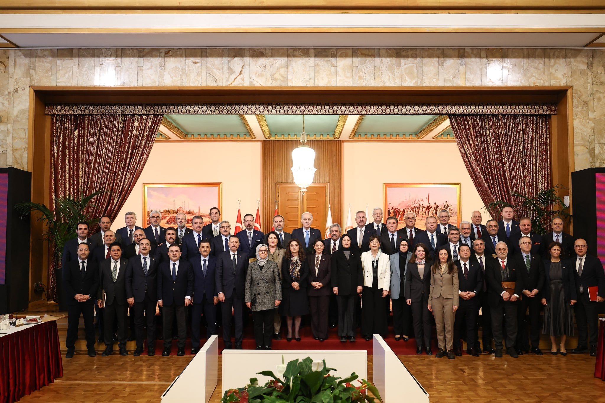 Toplantı başlangıcında Meclis Başkanı Numan Kurtulmuş rapordaki düzenlemelerin af niteliği taşımadığını da vurgulayarak, “Sonraki süreçte atılacak adımlara istikamet çizen ve ortak hedefler doğrultusunda yol gösteren bir başvuru metni…Atılacak adımların mihenk taşı” ifadelerini kullandı.